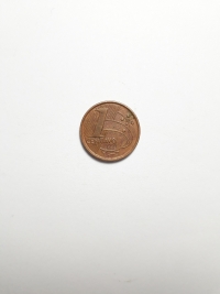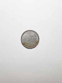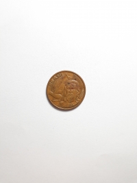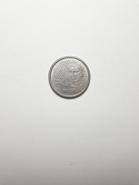 Segunda família do real. Aço revestido de Cobre 4,1gr 22mm. Foram produzidas 11.264.000 unidades.
