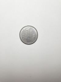 Primeira família do real. Aço inoxidável 3,3gr 21mm. Foram produzidas 235.000.000 unidades.