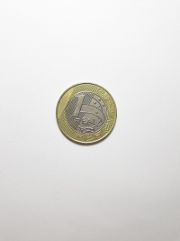 Segunda família do real. Aço com revestimento de Cobre 4,1gr 22mm. Foram produzidas 28.416.000 unidades.
