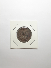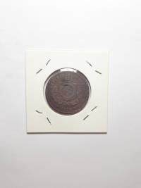 CuproNíquel 10gr 27mm; Período: Império de D. Pedro II. Foram produzidas 4.000.000 unidades.