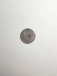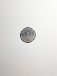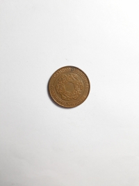 No anverso, Brasão de armas da Argentina. No topo está o Sol de Maio, o famoso símbolo da Argentina, o sol simboliza a ascensão da Argentina. Na elipse central estão duas mãos unidas, que simboliza a união das várias províncias da Argentina. As mãos seguram uma lança, que simboliza a defesa da liberdade. Cercada por uma coroa de louros, que significa vitória. Bronze-Alumínio 2,25gr 18,2mm. Foram produzidas 805.550.000 unidades.