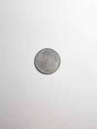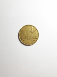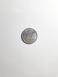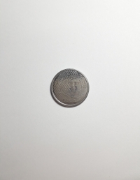 No anverso, processo de forjamento em andamento por um operário. Aço Inoxidável 4,4gr/3,7gr 22,5mm. Foram produzidas 947.900.000 unidades.