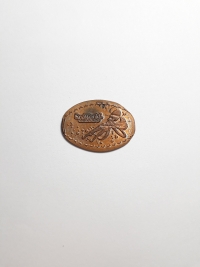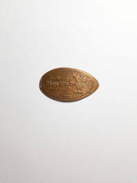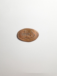 Moeda alongada com a logo do parque aquático de mamíferos marinhos de San Diego, nos Estados Unidos.