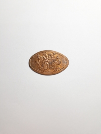 Moeda alongada comemorativa dos 40 anos do Magic Kingdom, parque temático do Walt Disney World Resort.