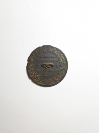 Botão antigo com o brasão do "Estado Oriental del Uruguay". No reverso, nome das batalhas vencidas pelas tropas da Cruzada Libertadora, na guerra da Cisplatina entre 1825 e 1828 (Batlha Sarandi, Batalha Rincón de Las Gallinas, Batlha de Ituzaingó). Bronze 33mm.