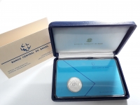 Moeda Comemorativa do Centenário da República com estojo e certificado. No anverso, efígie da República e o dístico "1889 Centenário da República 1989". No reverso, Campo inspirado no Pavilhão Nacional, ao qual se sobrepõem estrelas representando a constelação do Cruzeiro do Sul. Prata (999,9) 13,47gr 31mm. Foram produzidas 30.000 unidades.