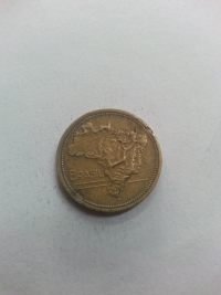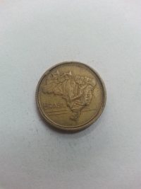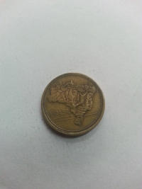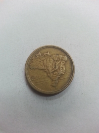 No anverso, mapa topográfico do Brasil. Bronze-Alumínio 7gr 23mm. Foram produzidas 32.544.000 unidades.