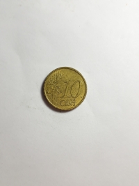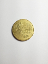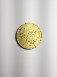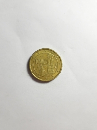 No anverso, o portão de Brandemburgo, símbolo da divisão da Alemanha e sua posterior unificação, cercado pelas 12 estrelas da Europa. Ouro Nórdico 5,74gr 22,25mm. Foram produzidas 82.255.000 unidades.