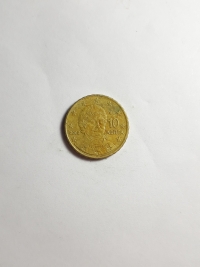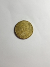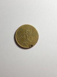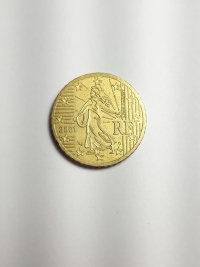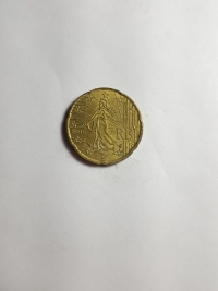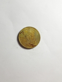 No anverso, o semeador, projetado por Oscar Roty, o emblema nacional da República Francesa. Ouro Nórdico 7,8gr 24,25mm. Foram produzidas 276.300.000 unidades.