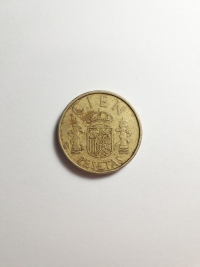 No anverso, retrato do ex-rei da Espanha, Juan Carlos I. No reverso, brasão de armas da Espanha. Bronze-Alumínio 9,25gr 24,5mm. Foram produzidas 160.000.000 unidades.