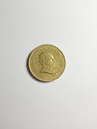 No anverso, retrato de José Artigas. Foi um político e militar uruguaio, sendo o herói nacional de seu país. Bronze-Alumínio 3,52gr 20mm. Foram produzidas 50.000.000 unidades.