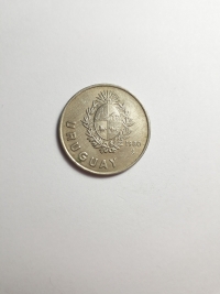 No anverso, brasão de armas do Uruguai. No reverso, flor-de-coral, a flor nacional do Uruguai. CuproNíquel 6gr 24mm. Foram produzidas 50.000.000 unidades.