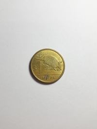 Comemorativa da Fauna Nativa do Uruguai. No anverso, brasão de armas do Uruguai. No anverso, mulita (Dasypus hybridus). Aço com revestimento de Latão 3,52gr 20mm. Foram produzidas 80.000.000 unidades.