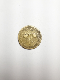 Comemorativa do 1º Centenário da Independência do Brasil. Bronze-Alumínio 4gr 22,5mm. Foram produzidas 13.744.000 unidades.