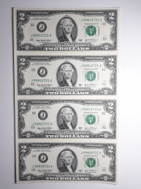 Folha de papel-moeda sem cortes de 1 Dólar com certif...